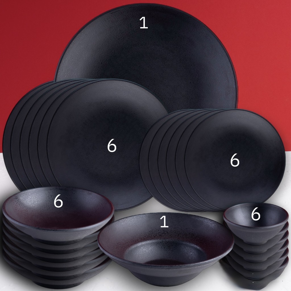 سرویس ۲۶ پارچه شش نفره مشکی مات ملامین تورزن
